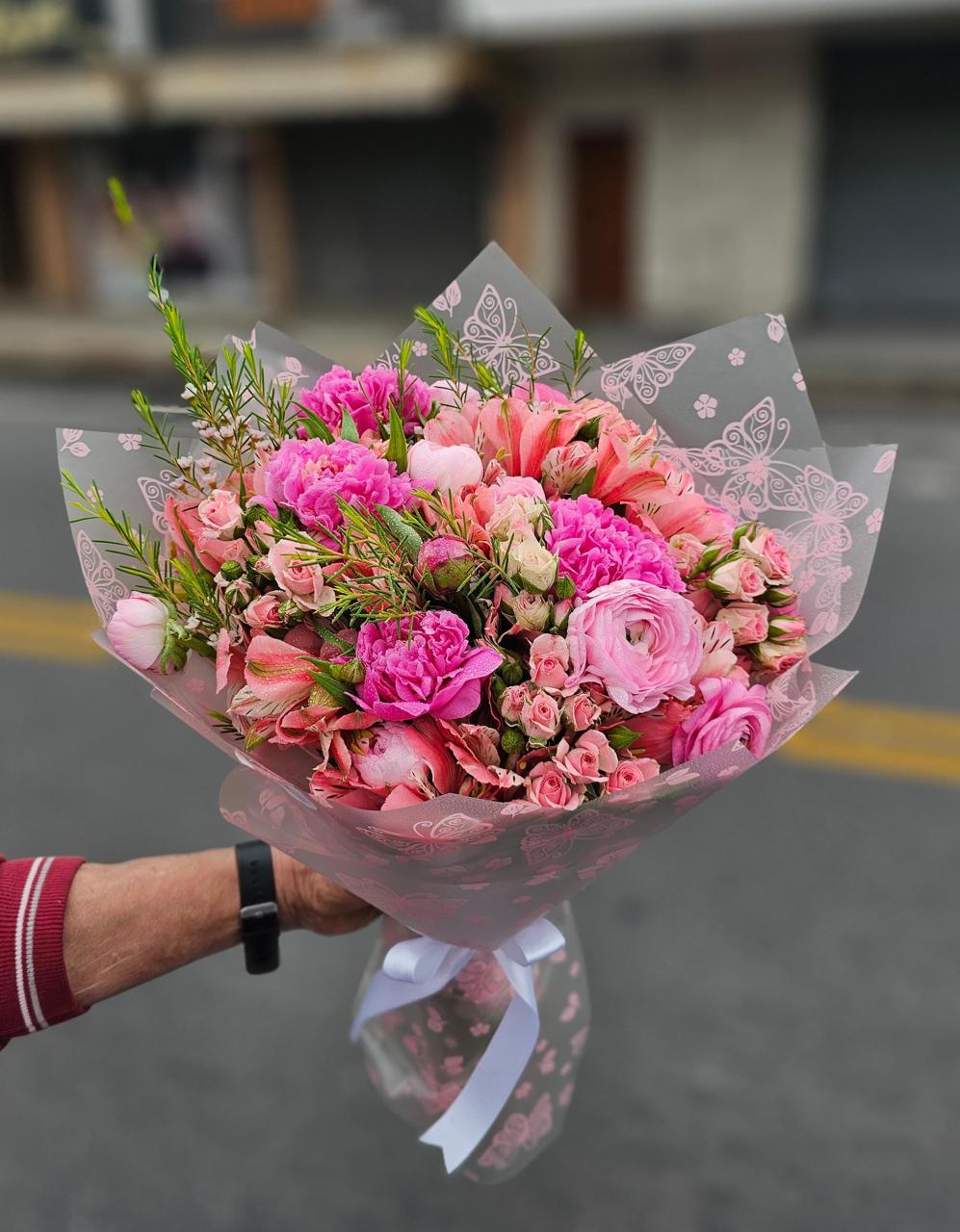 Ramo de Peonias, Rosas Sprite, Astromelias y Marimonias cantidad